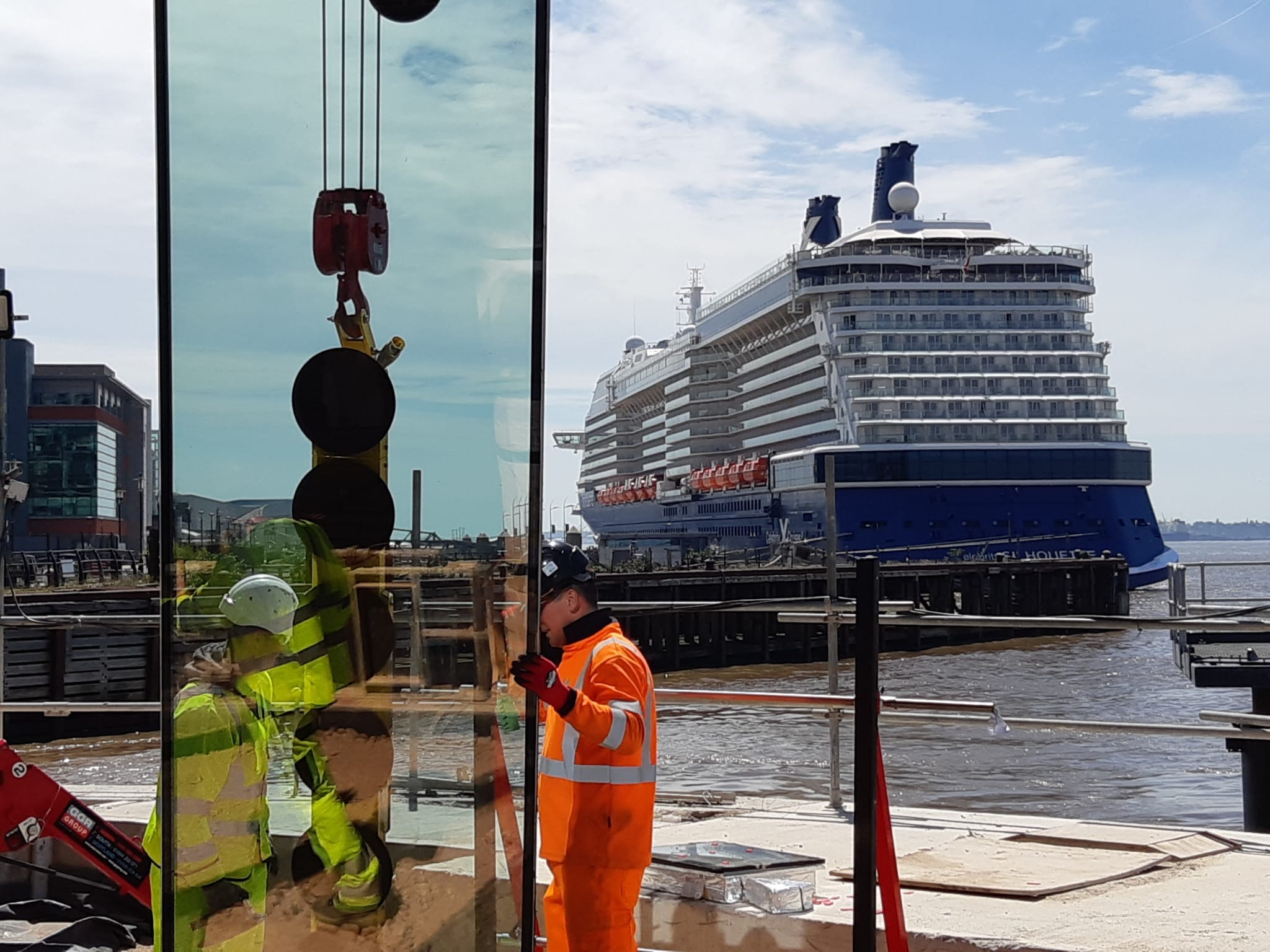 The impressive new terminal is located on Princes Half-Tide Dock, nearly 700m downriver of the original Pier Head facility.